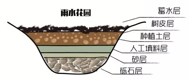 而雨水花园远远没有你表面看起来那么简单。雨水花园要求雨水在短时期内下渗净化,一般1至4小时内下渗完毕。因此土壤结构较普通花园渗水性强,要求有更复杂的土层结构。